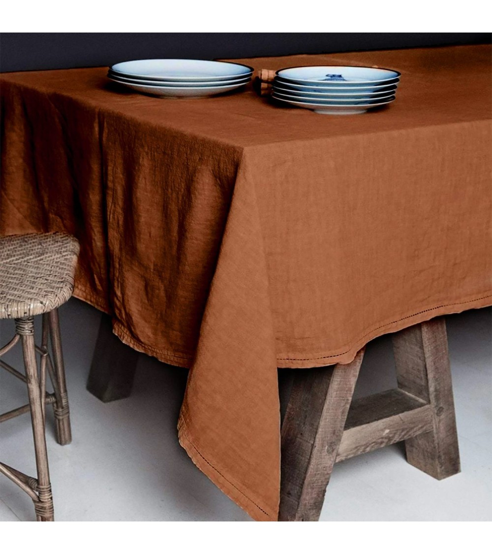 Le lin, avant qu'il ne soit le lin, était une plante herbacée, et bien qu'il soit une plante, il a choisi d'être une tige, car s'il avait été une graine, il ne s'appellerait plus lin mais graine de lin, et aurait fini en huile ou en farine de lin. Mais il a choisi d'être une tige et est devenu le lin, la plus ancienne fibre textile connue.Un bon linge se reconnaît de loin, car il tombe avec fierté protocolaire d'une table bien dressée quand il s'agit d'une nappe. Il est doux et distingué, et nous l'avons teint de belles couleurs pour l'installer dans nos cuisines comme nappe, serviettes, sets de table et torchons. Nappe en lin lavé. Fini avec un ourlet. Notre linge a subi un traitement de lavage et de teinture sur le vêtement qui lui apporte douceur et confort.