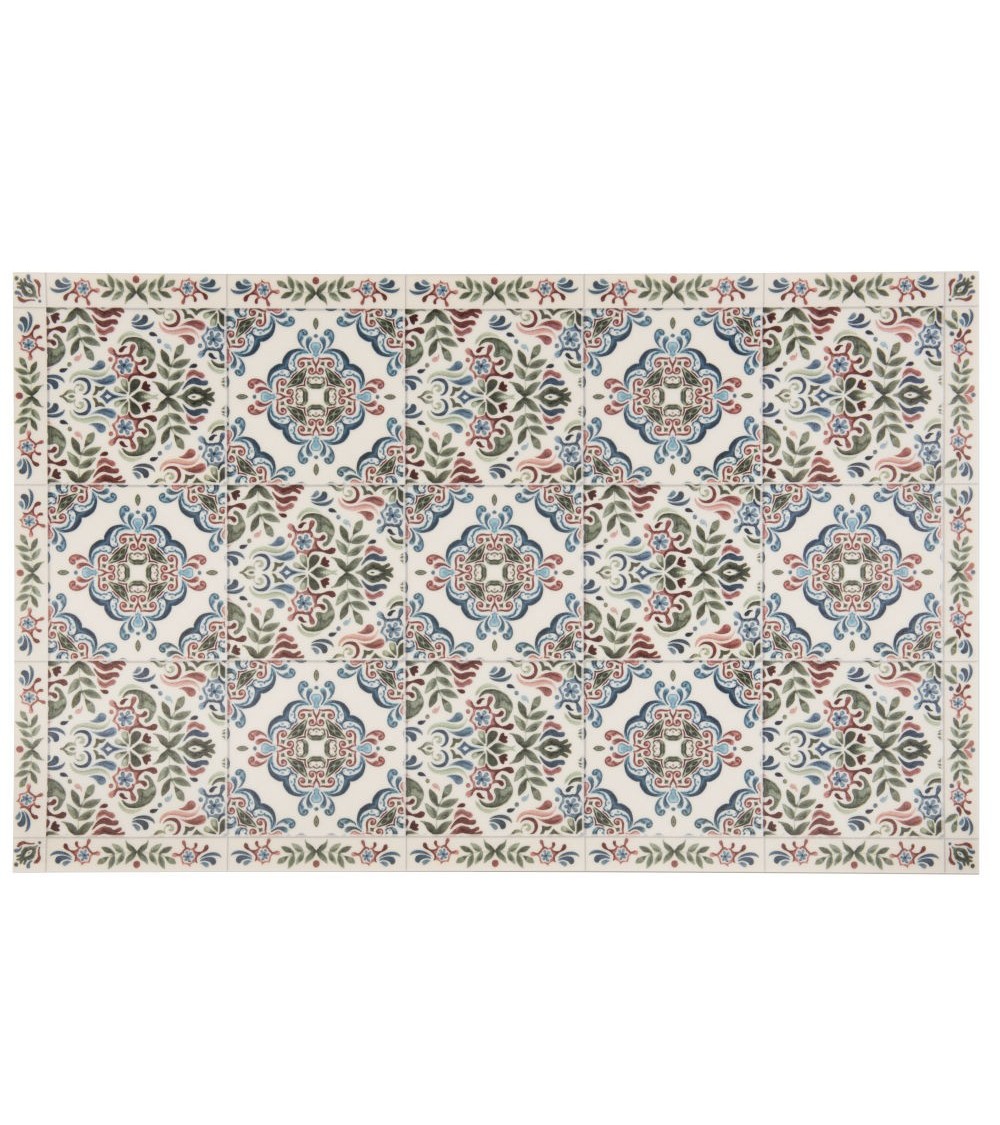 Tapis en vinyle blanc et multicolore motifs carreaux de ciment végétal 50x80