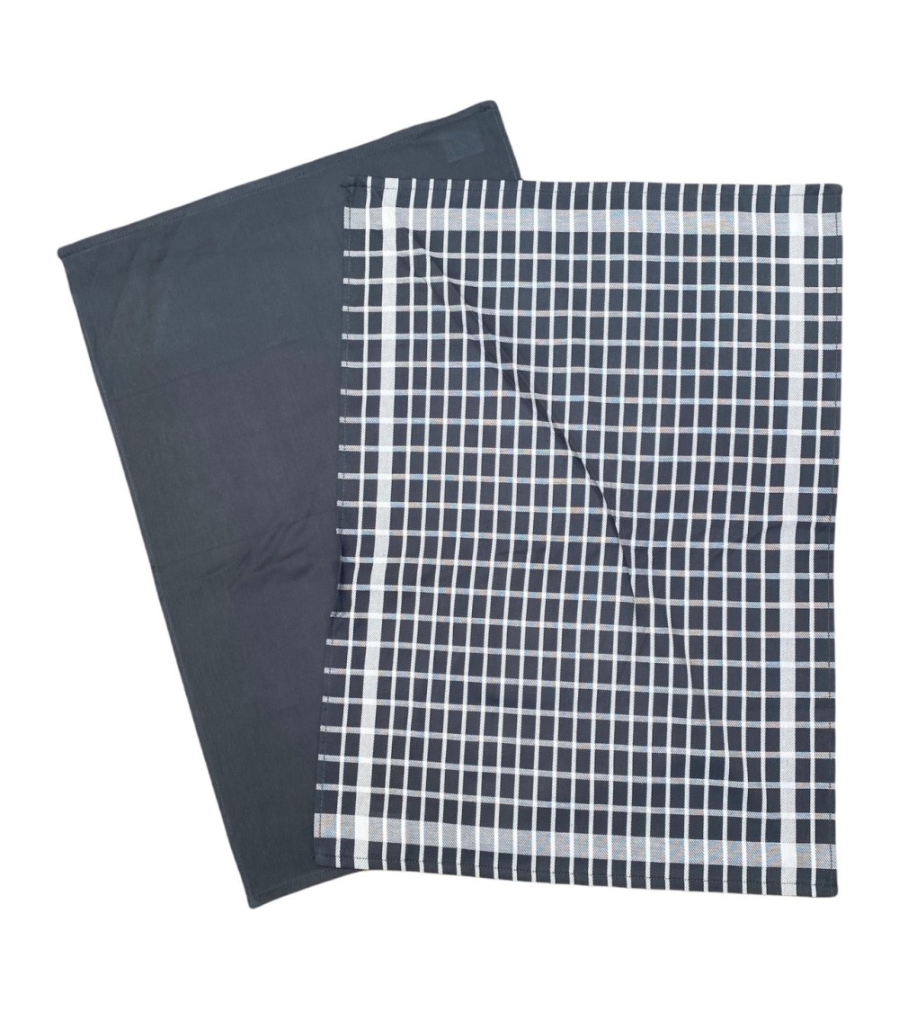 Ce set de deux torchons ''Carreaux'' d'importation égyptienne est réalisé dans un coton d'une très belle qualité. Ce motif intemporel carreaux trouvera sa place dans toutes les cuisines. Un torchon carreaux gris et blanc et un torchon uni gris. Deux sets de deux torchons assortis( 4 torchons au total)