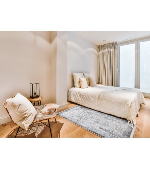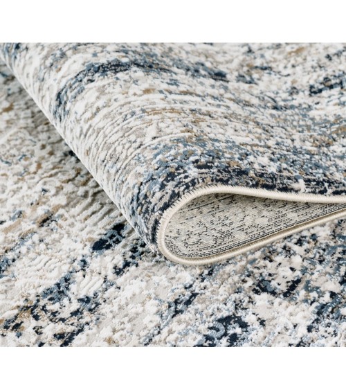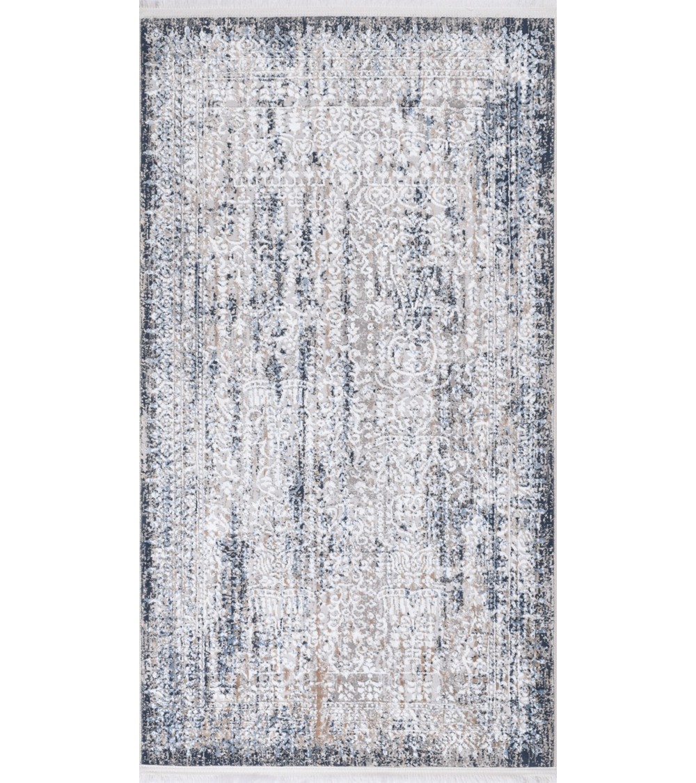 Tapis vintage motif abstrait à relief avec franges bleu 80x150cm