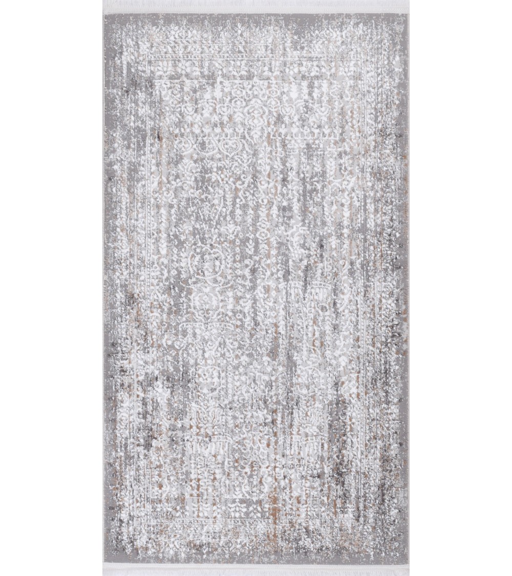 Tapis vintage motif abstrait à relief avec franges beige 80x150cm