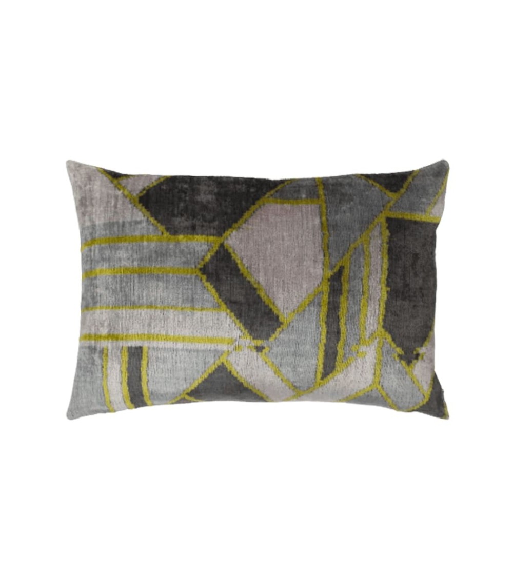 Tissé à la mainFace - Velours de soie / Dos - CotonTaille - 40x60cmMatières - 80 pour cent soie, 20 pour cent cotonLavage - Nettoyage à secDéhoussable avec zip de fermeture discretIntérieur coussin vendu séparément