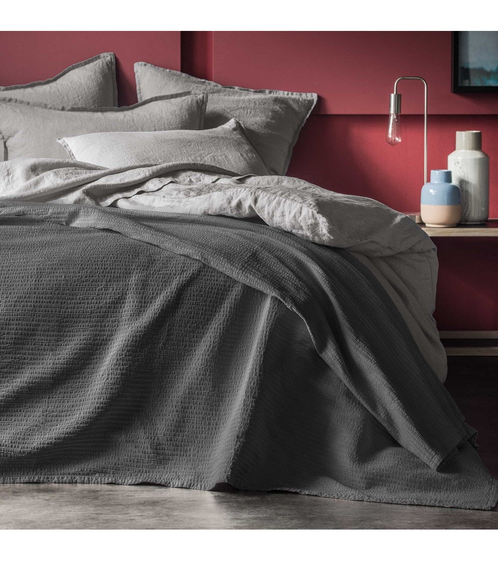 Plaid en 100 pour cent coton, uni, piquage plissé. De couleur gris souris avec un effet plissé. En plaid ou bout de lit, il ravira les pièces de votre intérieur. Composition - 100 pour cent coton. Entretien facile, lavage à 30 degrés. Tous nos produits sont certifiés OEKO.TEX. Fabriqué en Europe.