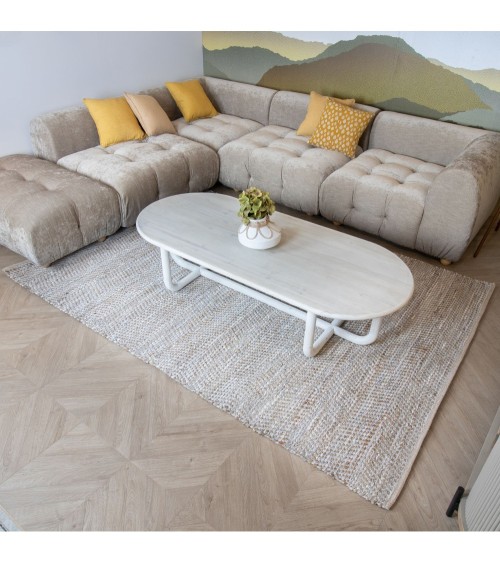 Au toucher irrésistible, ce tapis se pose sur une descente de lit, dans une entrée, une cuisine ou une salle de bain. Idéal pour accentuer le côté masculin d'un bureau ou d'une chambre, le tapis Bodum vous séduira par son aspect naturel et authentique et par l'originalité d'un tapis en jute et cuir tressé. Ce tapis deviendra également un incroyable tapis de salon évoquant les contrées lointaines, véritable invitation à explorer des terres lointaines. Se marie parfaitement avec le tabouret Bodum. Tapis 45 pour cent cuir recyclé, 45 pour cent jute et 10 pour cent coton DIM (cm)- 240x170 Aspirer