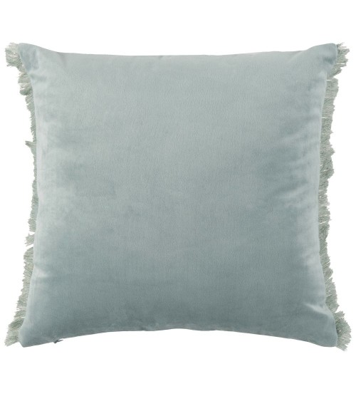 Housse de coussin en coton recyclé motifs jacquard et franges bleues 40x40