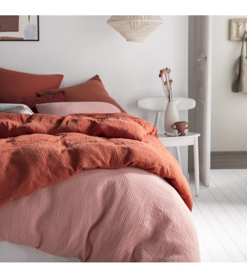 Taie d'oreiller unie en coton rose 50x75