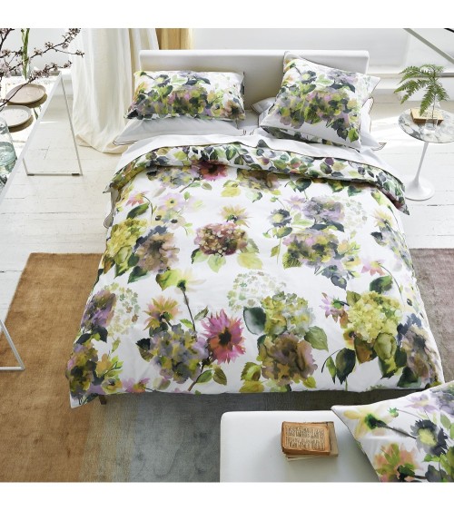 Le modèle Palace Flower est un linge de lit en percale de coton, sur lequel est imprimé un élégant motif inspiré de l'art traditionnel japonais avec des fleurs vibrantes ocre et corail, magnifiquement équilibrées sur un fond blanc frais. Le motif coordonné (revers) est un feuillage dans les mêmes tons de couleur que le motif principal.Ce produit est vendu individuellement et peut être complété par d'autres articles de la même collection ou d'autres articles unis coordonnés.La taie d'oreiller se compose d'une face imprimée du motif principal orné de fleurs ocre et corail, et d'une face imprimée du motif coordonné feuillage. La taie d'oreiller est finie par un passepoil velours.