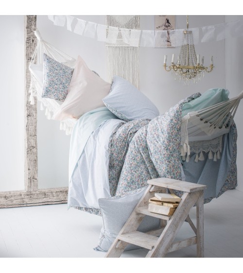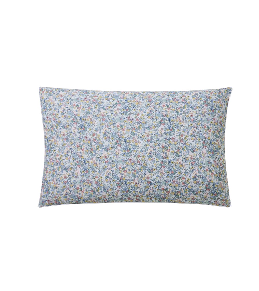 Un dessin inspiré du Liberty dans une version exotique inédite ! Joyeux et riche en couleurs, Aloha est un mini monde à l'image des îles d'Hawaï.Ce produit est vendu individuellement et peut être complété par d'autres articles de la même collection ou d'autres articles unis coordonnés.La taie d'oreiller est réversible et se compose d'une face confectionnée dans le motif principal Liberty et d'une face confectionnée dans le motif coordonné orné de feuillages bleu ciel sur un fond blanc. La taie est finie par un passepoil blanc.