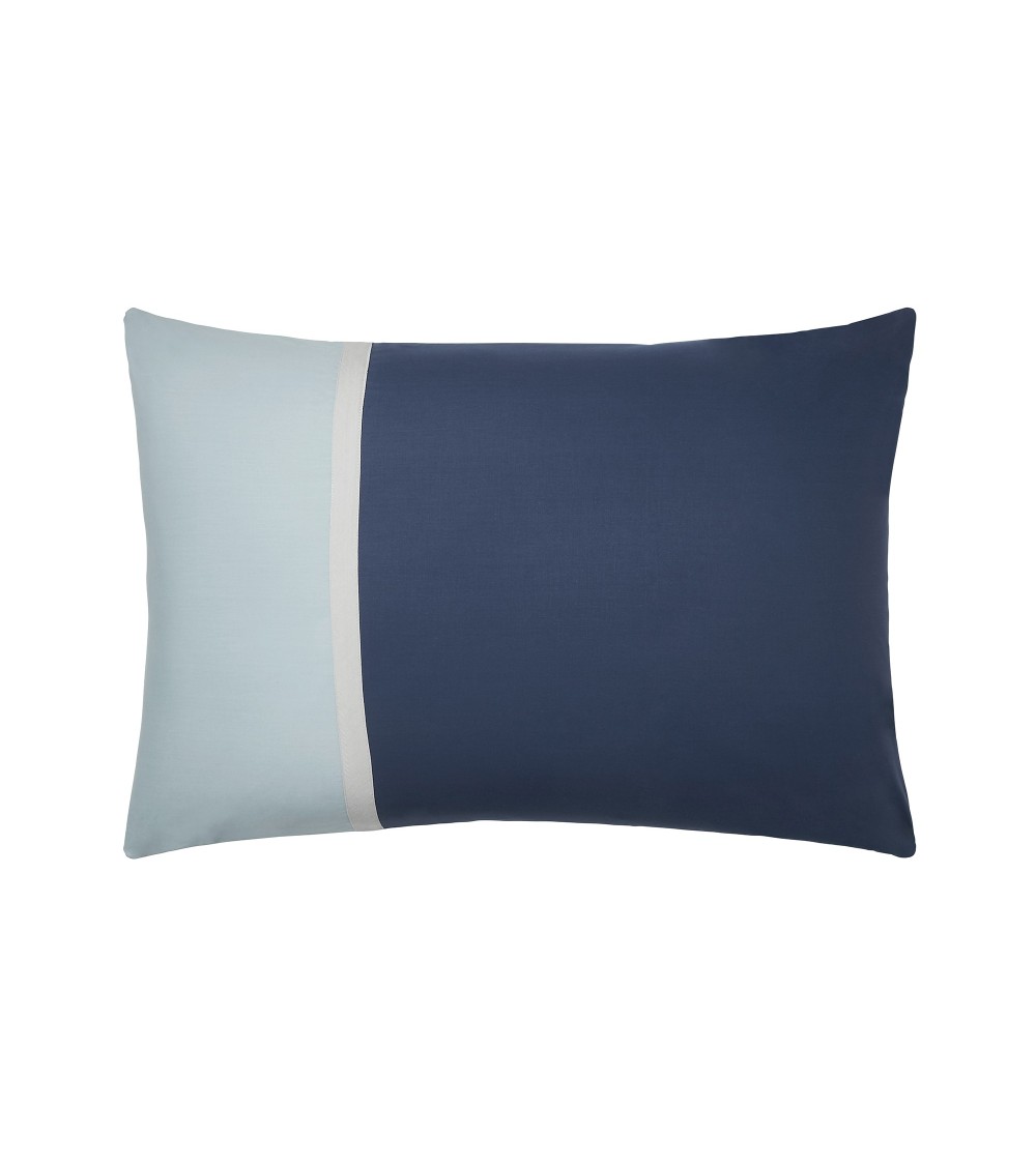 Un retour à l'essentiel pour ce nouveau Toi et Moi qui ne manquera pas de séduire les hommes. Sa simplicité s'exprime avec force en empruntant ses codes à l'univers marin. Une efficacité esthétique pour cette association de couleurs invitant à l'apaisement et au repos.Ce produit est vendu individuellement et peut être complété par d'autres articles de la même collection ou d'autres articles unis coordonnés.La face recto de la taie d'oreiller est bicolore coloris bleu nuit et bleu glacier, les deux couleurs étant séparées par un biais gris perle. La face verso de la taie est une coloris bleu glacier.