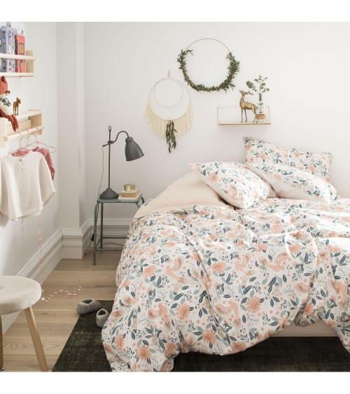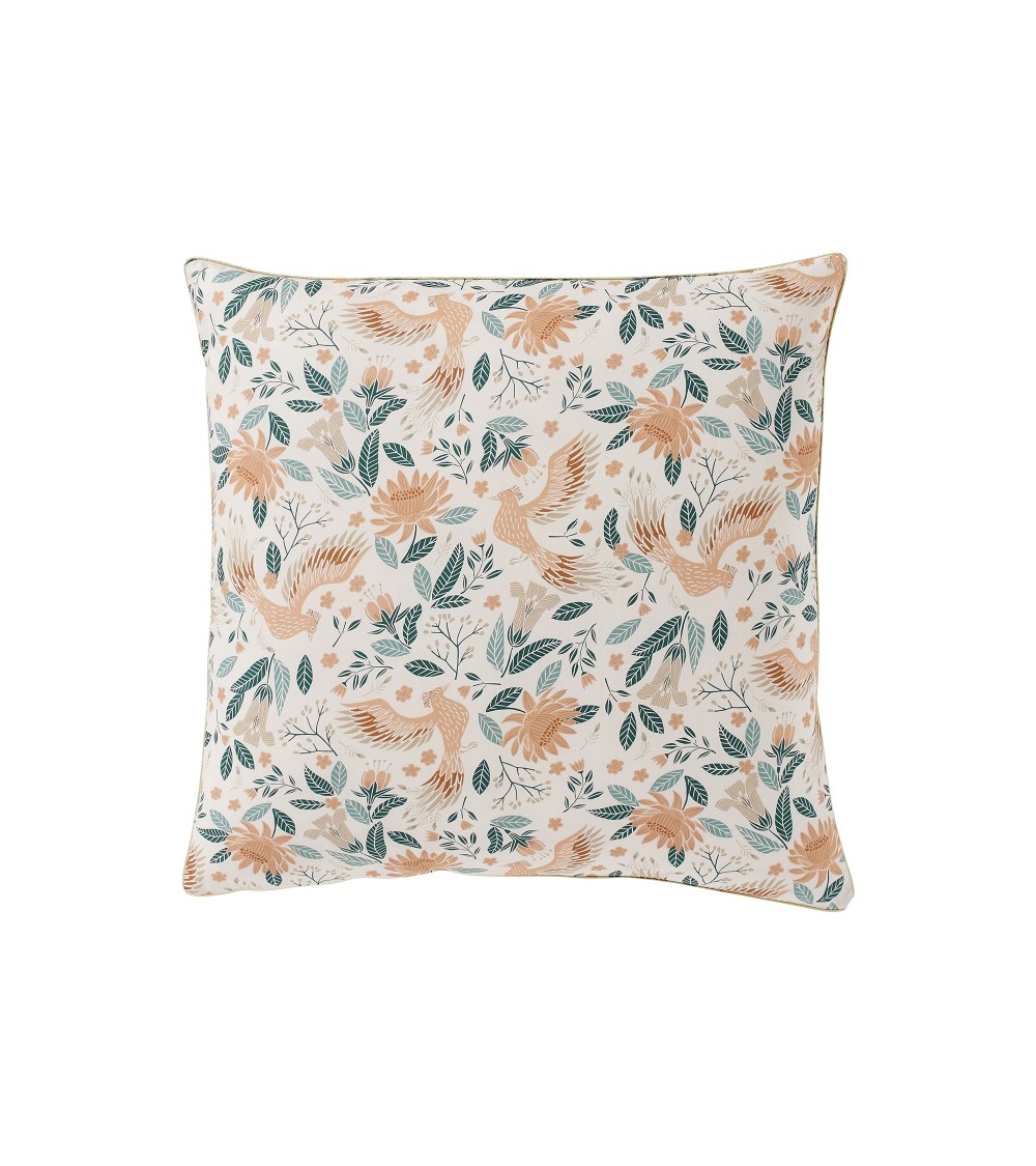 Le modèle Fabuleuse fait écho à un joli ballet à la douce féminité, et fait la part belle au Phoenix, créature fantastique. Il est dit que cet oiseau légendaire pouvait renaître éternellement de ses cendres. Ce dessin est réalisé selon une technique de linogravure apportant une charmante irrégularité aux contours.Ce produit est vendu individuellement et peut être complété par d'autres articles de la même collection ou d'autres articles unis coordonnés.La taie d'oreiller réversible se compose de deux faces - l'une est confectionnée à partir du motif principal orné de phoenix et de végétaux, l'autre est confectionnée dans une percale de coton unie coloris lingerie. La taie est encadrée d'un passepoil doré.