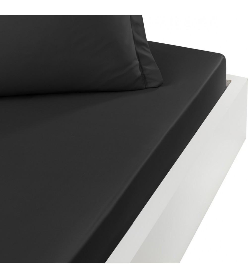 Drap housse en percale de coton Anthracite 80x200 cm