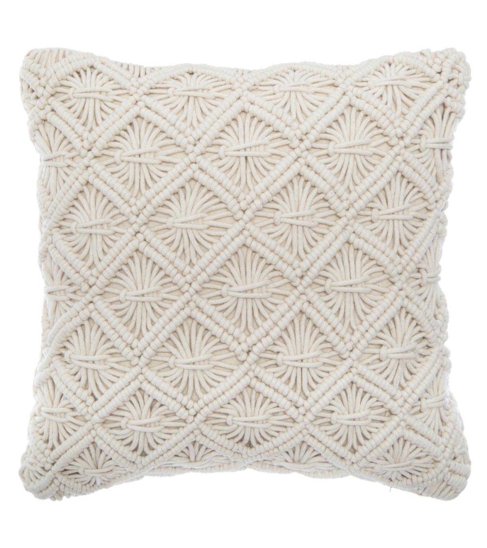 Coussin déhoussable en macramé coton ecru 40 x 40