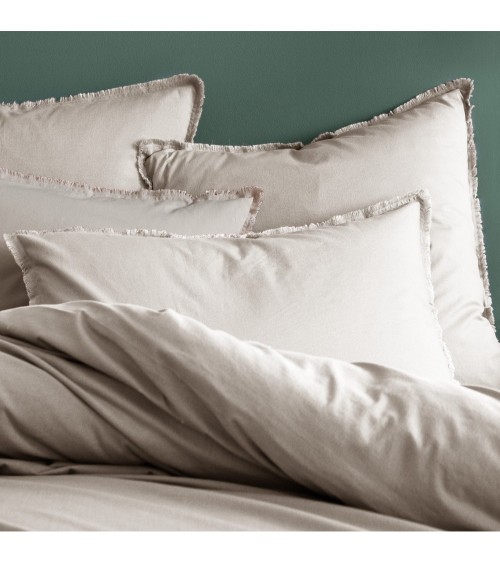 Set de 2 taies doreiller unies finition à franges Lin 50x70cm