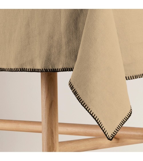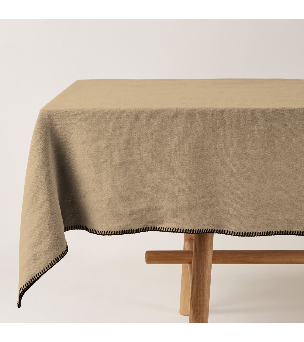 Nappe rectangulaire 140x320 cm Seigle et feston noir en Lin