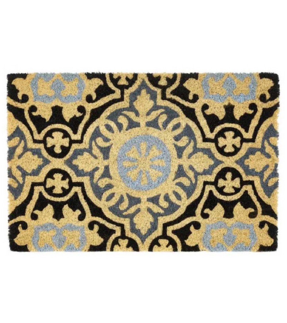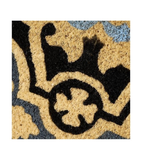 Paillasson en coco inspiration carreaux de ciment. Dimensions-60x40x1.5cm . Matière- Coco . Couleur- Gris