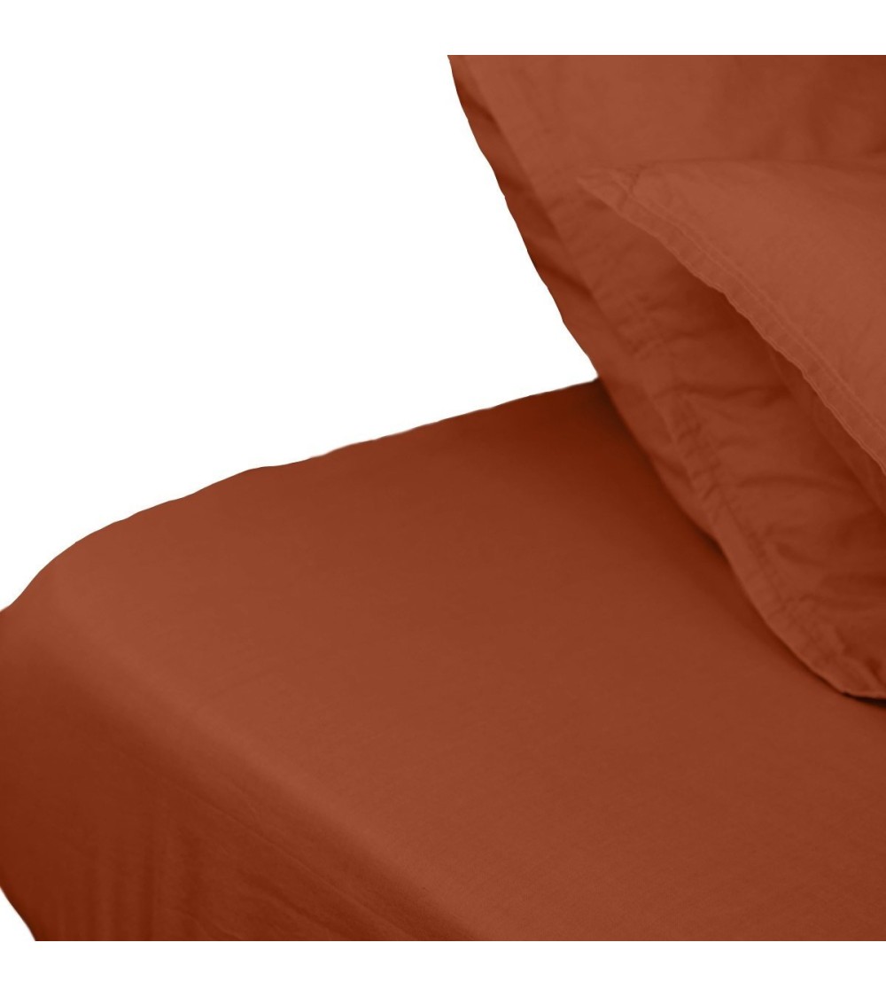 Drap housse en percale lavée bonnet 30 cm terracota 140x190 cm