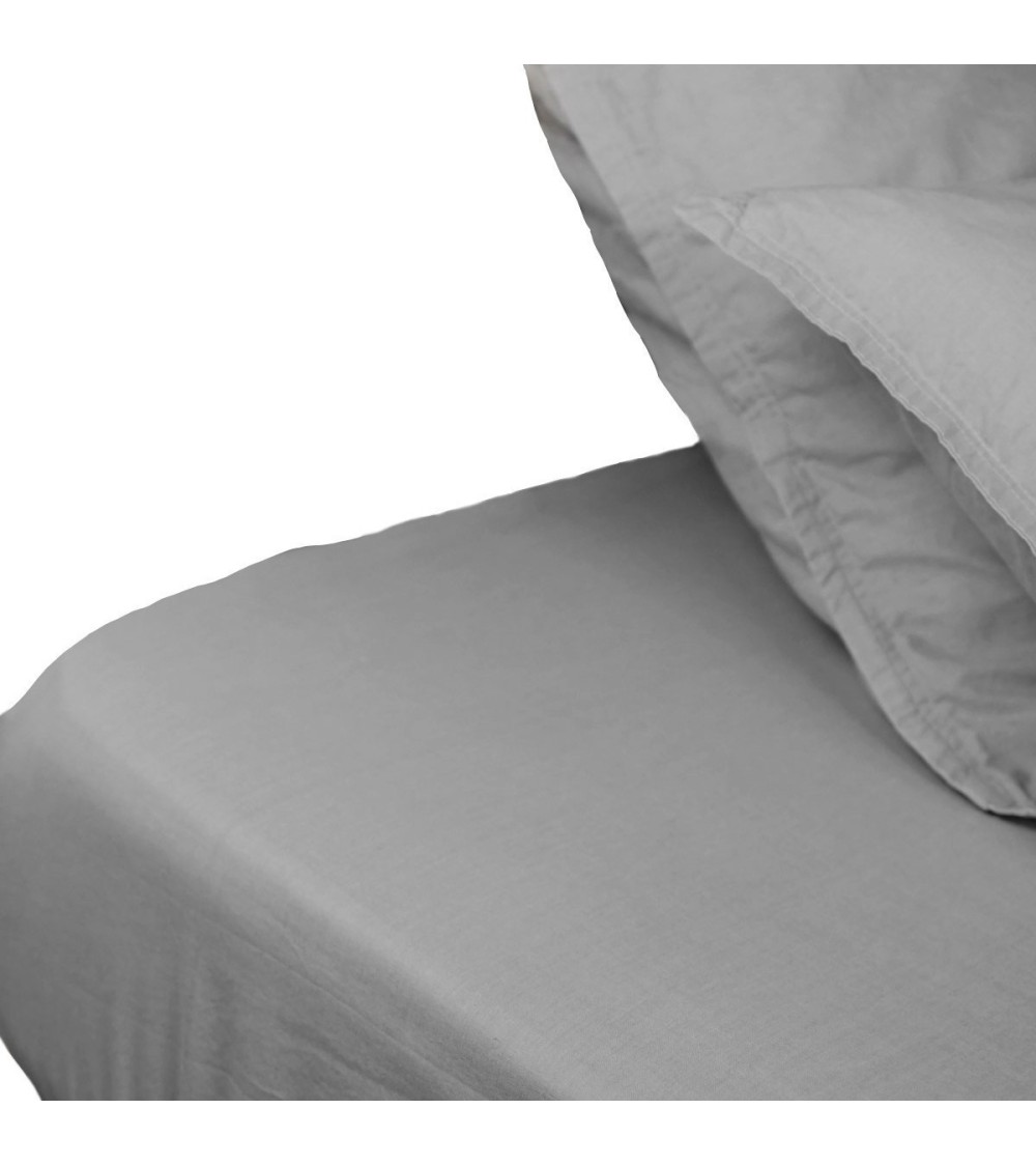 Drap housse en percale lavée bonnet 30 cm gris perle 160x200 cm