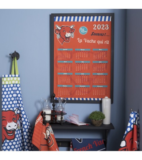 Cette année, nous vous proposons un torchon avec un imprimé Calendrier 2023 avec la marque emblématique La Vache qui Rit