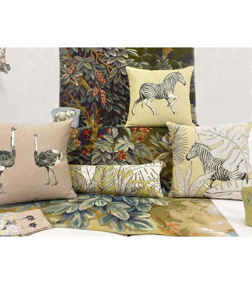 Bas de porte Faune sauvageDécouvrez les bas de porte 25x90cm de la collection ''Faune sauvage''Avec le printemps, voici une gamme de teintes pastels toute en douceur. Venez découvrir les zèbres, panthères, éléphants et autruches qui pointent le nez hors de leur jungle graphique et renouvellent votre déco'' Patricia Composition - 72 pour cent Coton . 25 pour cent Viscose . 3 pour cent Polyester Intérieur - Inclus Style - Housse de coussin tapisserie tissée en France Entretien - Lavage à sec Dimensions - Ouverture - Fermeture éclaire Le coussin est fourni avec son intérieur (garnissage inclus)