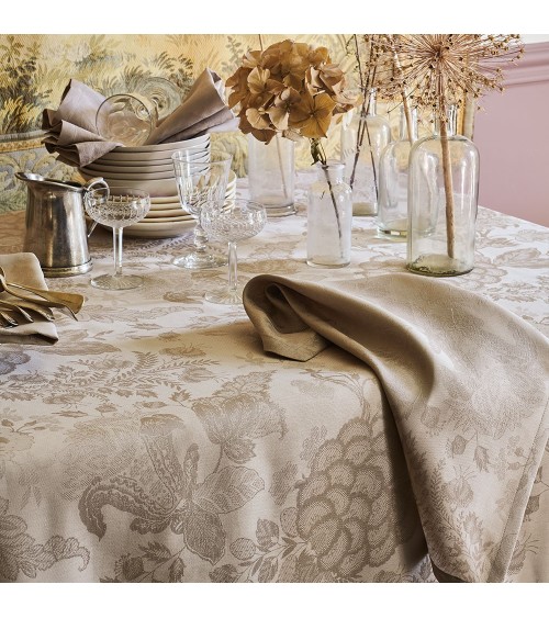 Serviette en métis (52 pour cent coton, 48 pour cent lin) damassé (jacquard) fabriquée en France à Gérardmer. Linge des Vosges. Finitions raffinées avec des coins capuchons. Matière - 52 pour cent coton / 48 pour cent lin. Couleur dominante - naturel. Taille (largeur x longueur) - 54X54. Traitement - antitache déperlant. Type - jacquard. Style - Fleurs et nature. Finitions - Finitions raffinées avec coins capuchons. Grammage - . Entretien - En cas de tache, absorber délicatement les liquides ou tamponner avec une éponge humide après avoir retiré les éventuels éléments solides.Si nécessaire, laver en machine à 40degrés avec un dosage de lessive normal. Sans adoucissant, ni détachant ni lingette de nettoyage.Sécher à température modérée.Repasser à fer très chaud, afin de réactiver la qualité du traitement.Cet article est labellisé Vosges Terre Textile. Il a été tissé dans nos ateliers de Gérardmer - véritable linge fabriqué dans les Vosges !