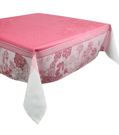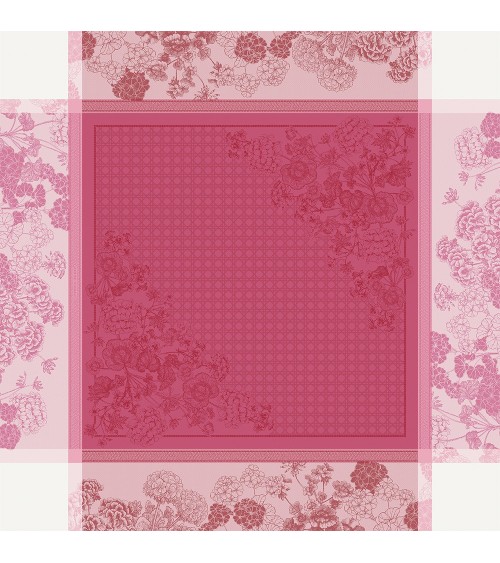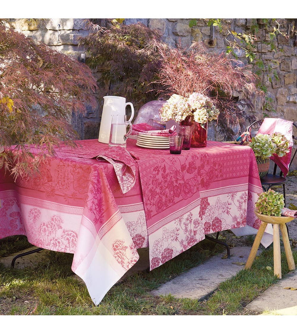 Nappe 100 pour cent coton issu de l'agriculture biologique damassé (jacquard) fabriquée en France à Gérardmer. Linge des Vosges. Cette nappe bénéficie du traitement anti.tache Green Sweet - votre linge de table reste propre et net. Matière - 100 pour cent coton bio. Couleur dominante - rose. Taille (largeur x longueur) - 175X255. Traitement - antitache déperlant. Type - jacquard. Style - Fleurs et nature. Finitions - Finition de qualité avec ourlets standards 15 mm. Grammage - . Entretien - En cas de tache, absorber délicatement les liquides ou tamponner avec une éponge humide après avoir retiré les éventuels éléments solides.Si nécessaire, laver en machine à 40degrés avec un dosage de lessive normal. Sans adoucissant, ni détachant ni lingette de nettoyage.Sécher à température modérée.Repasser à fer très chaud, afin de réactiver la qualité du traitement.Cet article est labellisé Vosges Terre Textile. Il a été tissé dans nos ateliers de Gérardmer - véritable linge fabriqué dans les Vosges !