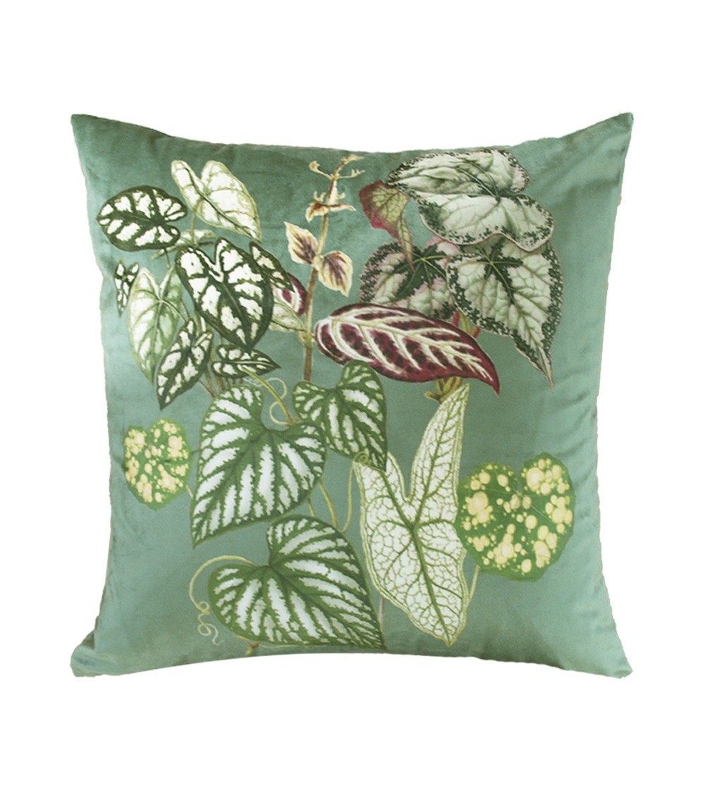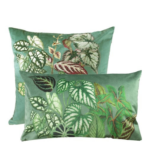 Housse de coussin velours imprimé. Verso velours imprimé pour le format 50x50 cm, velours uni pour le format 30x50 cm. Matière - 100 pour cent polyester. Couleur dominante - sauge. Taille (largeur x longueur) - 50x50. Traitement - . Type - imprimé. Style - Fleurs et nature. Finitions - Composition - 100 pour cent polyester ; Fermeture zip invisible. Garniture vendue séparément. Grammage - 350. Entretien - Laver à 30degrés. Pas de sèche.linge ni de repassage.