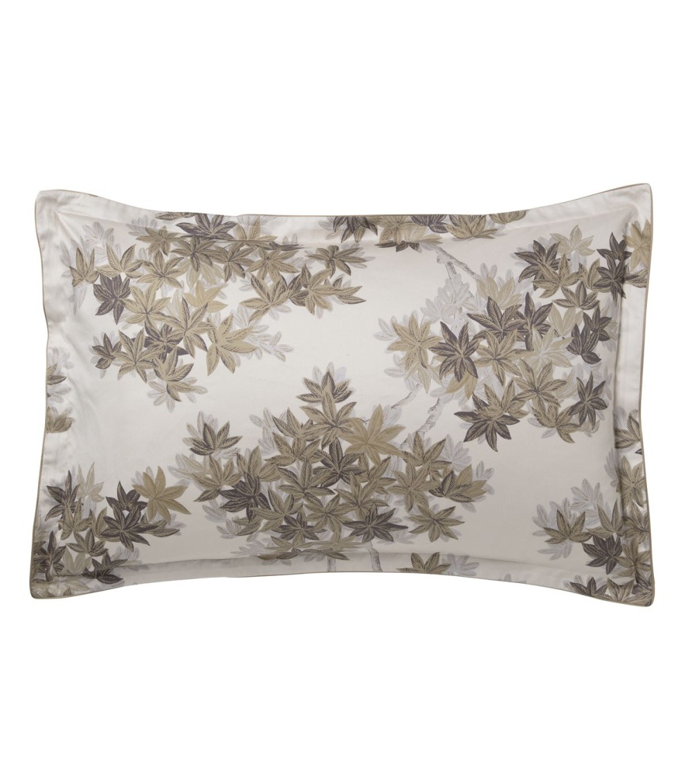 Le modèle Halatte au motif végétal dessiné à la main, joue un décor inspiré des laques d'extrêmes orient. Halatte a un bel effet de relief avec un jeu de tonalités, plus foncé au premier plan. Les motifs de feuilles rappellent le style Art déco. Une riche alliance entre des dégradés d'or et d'argent pour un luxe discret. Le revers est en satin uni et le ruban en satin de coton du même ton pour réchauffer cette parure. Le modèle est conçu en satin de coton bio. Alexandre Turpault vous propose un satin de coton bio doux pour nous et la planète. Notre marque se tourne sur une démarche écologique, notre collection est proposée sans plastique dans le respect de l'environnement. Notre linge de lit haut de gamme conçu pour durer et pour être transmis aux générations futures. Pour notre coton nous faisons le choix d'un produit éthique sans risque pour la santé, ni pour l'environnement. Le coton biologique que nous utilisons est issu de l'agriculture biologique. Il ne consomme pas de pesticides, pas d'engrais chimiques. La finition du ruban de satin est tissée en France. Les emballages ont été conçus pour être entièrement recyclables, papiers, encre végétales, liens et pochons en coton bio sont réutilisables