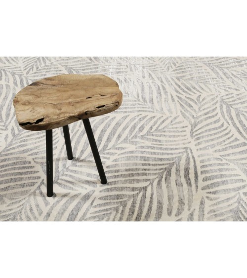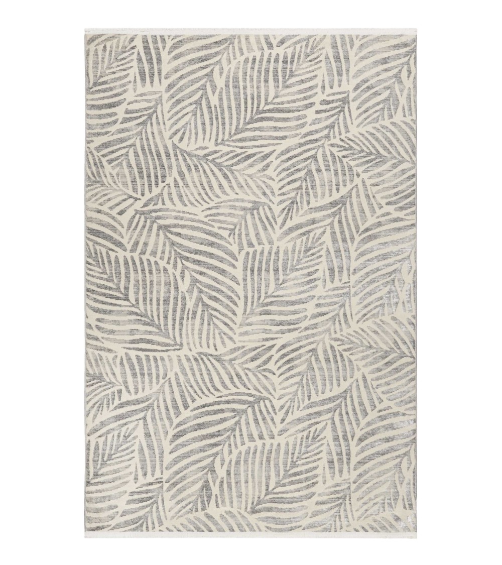 Tapis tissé plat thème feuillage gris fond beige à franges 160x225