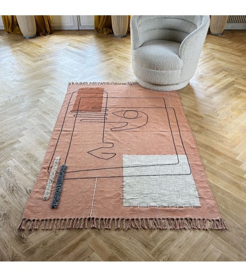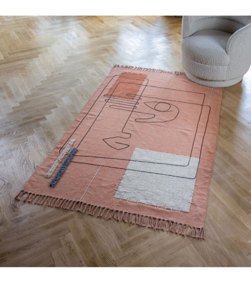 Tissé à la main, le tapis AGAFAY aux motifs abstraints de couleur rose, ne laissera pas vos amis et votre famille indifférents. Très courant en cette époque contemporaine, il donnera vie à n'importe quelles pièces. Comme toutes les pièces tissées à la main, il peut y avoir quelques imperfections ce qui n'enlève rien à leur charme unique. Tapis en coton rose avec franges et motifs abstraits Tissé à la main Dimensions - 120x180cm Poids - 2.500 kgs Aspirer
