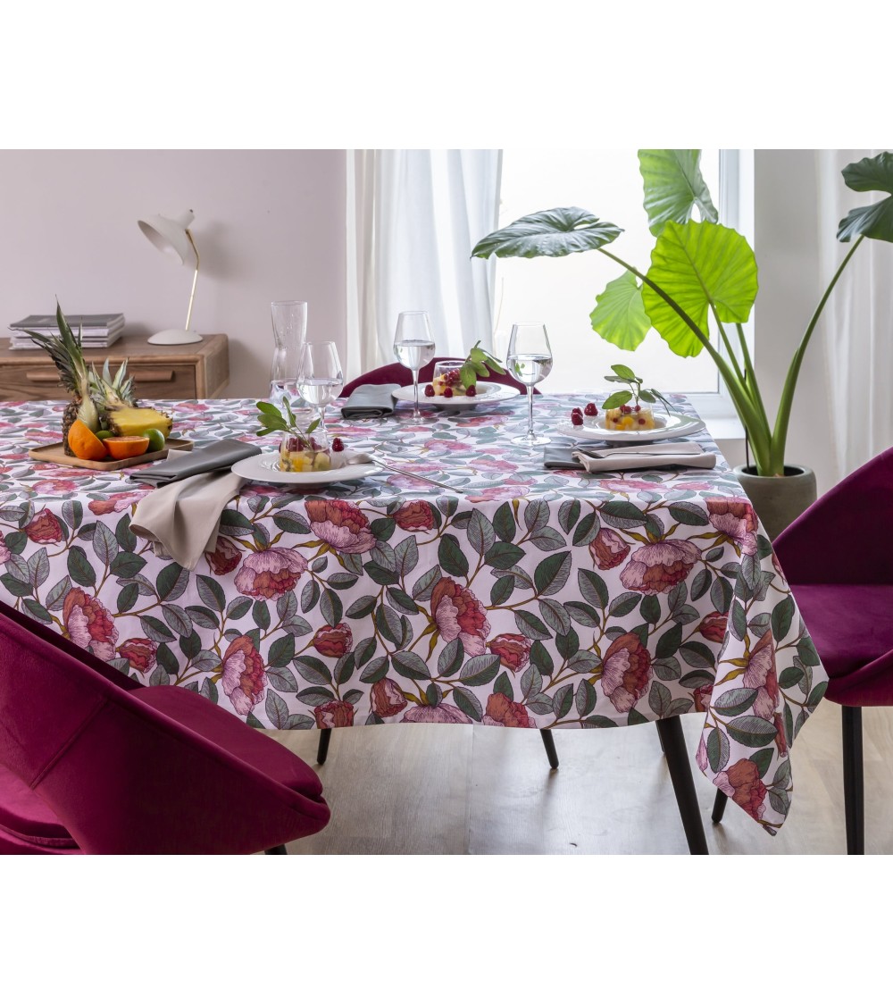Donnez un petit air printannier au décor de la salle à manger avec cette nappe rectangulaire 150x300 rose en coton. Une nappe au ravissant motif floral qui habillera la table avec élégance. Une nappe confectionnée dans un coton lourd (200g/m2) pour un tomber parfait ! Une nappe aussi jolie que facile à entretenir - son traitement antitaches empêche les taches de s'incruster au cur de la fibre. Un lavage à 40 degré suffit à lui redonner toute sa fraîcheur.