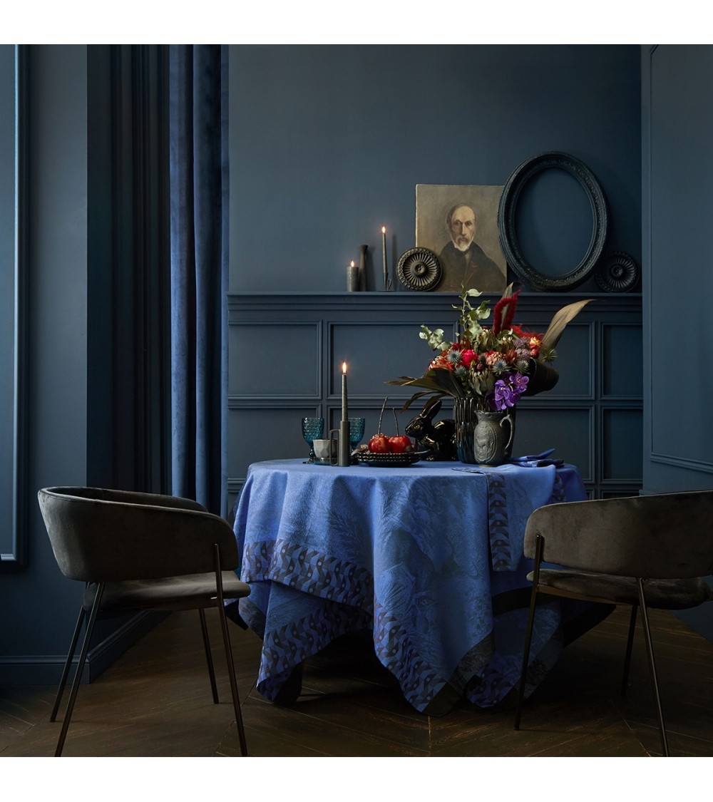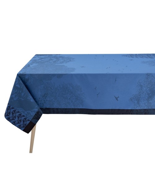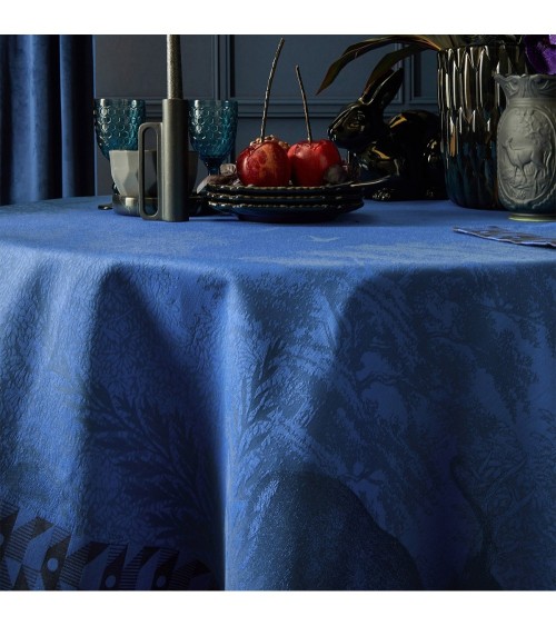 Une invitation onirique à la rencontre des animaux de la forêt, des arbres et de leur majesté. Un paysage comme source d'évasion ou comment savoir apprécier la poésie de l'instant présent. Véritable magie, cette histoire se raconte en bleu céleste. , orange des feuilles d' automne. et gris argent. couleur de brume. Un motif géométrique en bordure apporte une touche élégante de modernité.Une nappe en 100 pour cent coton pour des dîners féériques et audacieux. Un tissage jacquard précis et délicat grâce aux fils de coton peignés qui ne se terniront pas avec le temps !