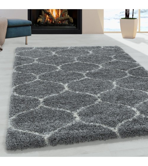 SALMA . Tapis à poils longs et motifs Alhambra . Gris et Blanc Tapis Shaggy à motifs Alhambra Réchauffez vos pieds et votre intérieur Style - Shaggy Géométrique Matière - 100 pour cent Polypropylène Matière du dessous - Jute antidérapante Hauteur de fils - 30mm Densité - 2100 grammes/m2 Entretien - Nettoyage Facile, aspirateur & chiffon humide Conçu en Europe Normes et Label STANDARD 100 by OEKO.TEXEnroulé et emballé, votre tapis arrive à destination en toute sécurité