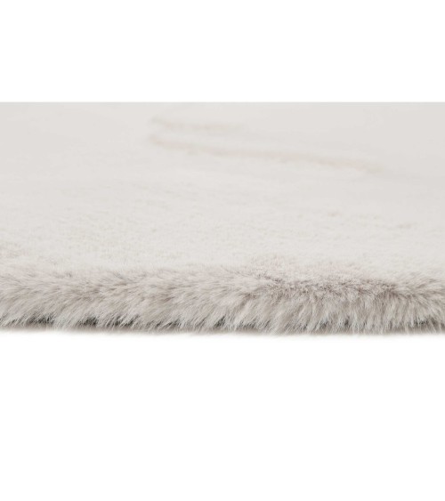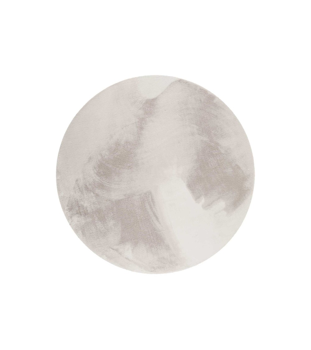 Tapis effet peau de lapin doux gris clair salon, chambre rond D200