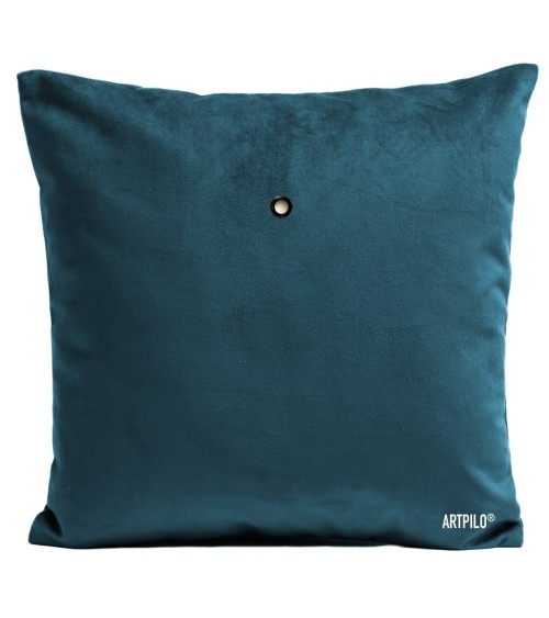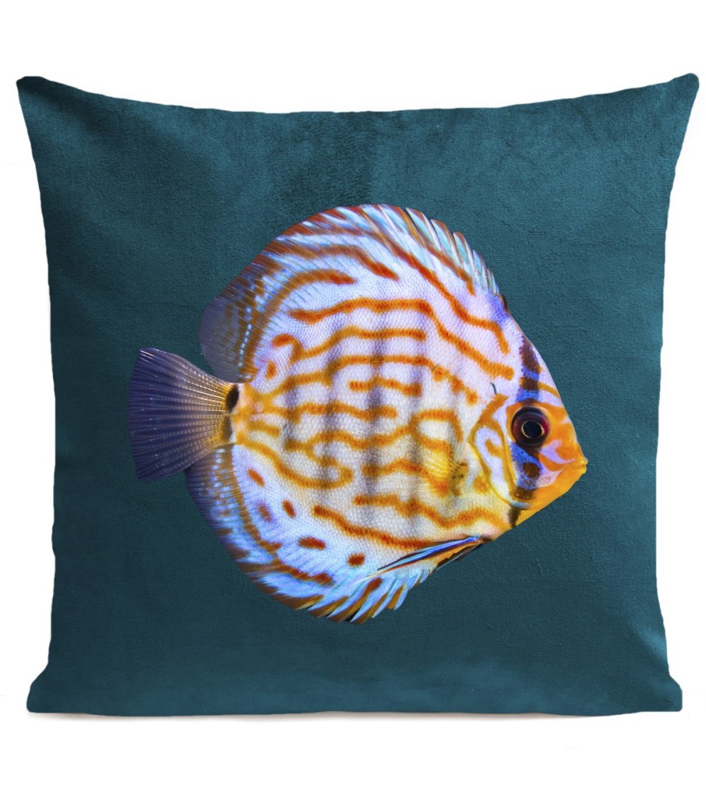 Coussin velours carré imprimé poissons bleu canard 60x60