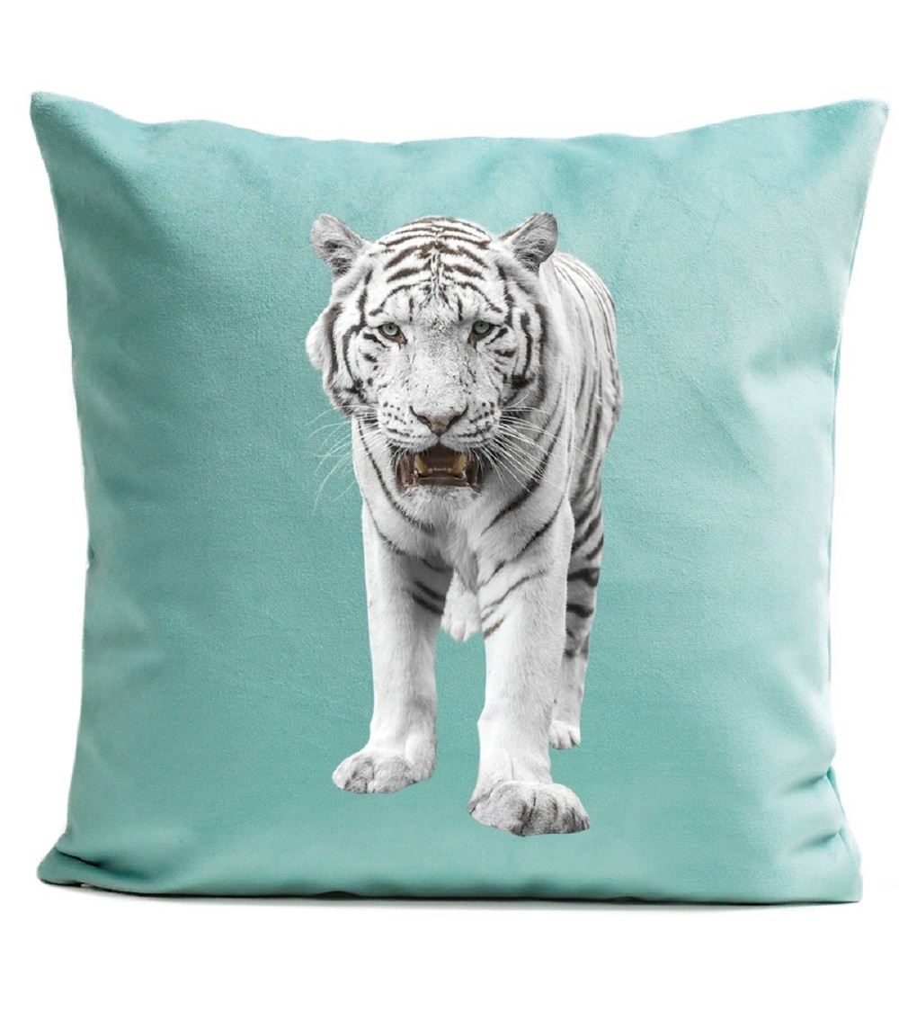 Coussin velours carré imprimé animaux vert d'eau 60x60