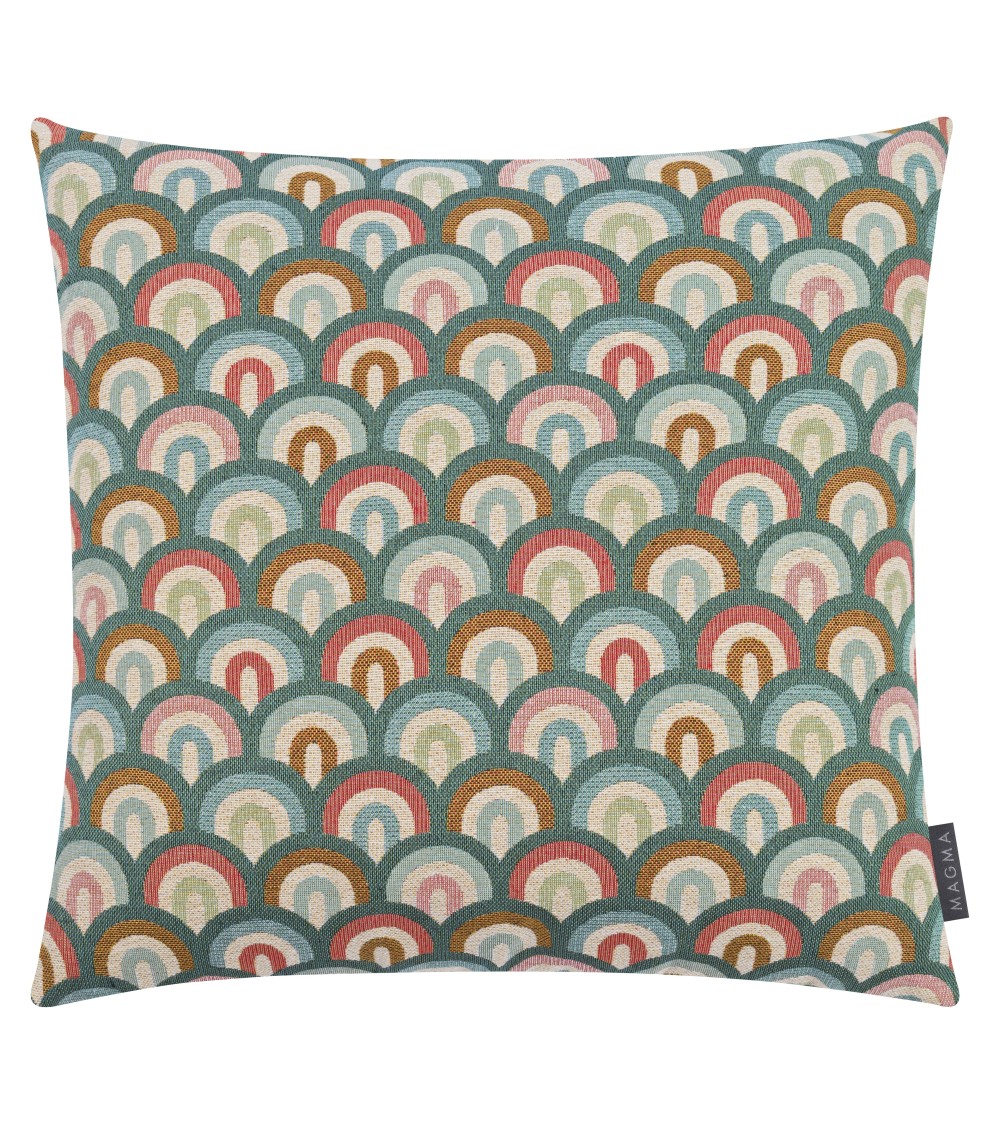 Motif art.déco coloré pour ces housses de coussin YUMA avec dos velours uni vert jade. Si vous recherchez une touche d'originalité, ce très joli motif queue de pan viendra réveiller votre décoration et s'harmonisera avec de nombreux intérieurs contemporains ou plus classiques. Vendues par lot de 2 housses sans les intérieurs. Se combinent harmonieusement avec les housses de coussin NORALIA de la même collection.