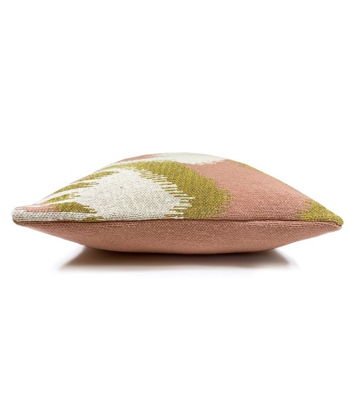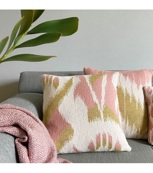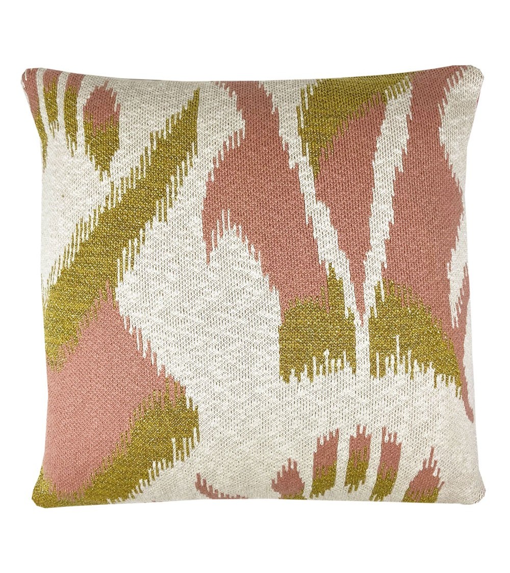 Coussin ikat tricoté rose 50x50