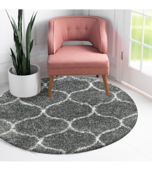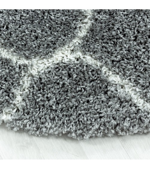 SALMA . Tapis Rond à poils longs et motifs Alhambra . Gris et Blanc Tapis Shaggy à motifs Alhambra Réchauffez vos pieds et votre intérieur Style - Shaggy Géométrique Matière - 100 pour cent Polypropylène Matière du dessous - Jute antidérapante Hauteur de fils - 30mm Densité - 2100 grammes/m2 Entretien - Nettoyage Facile, aspirateur & chiffon humide Conçu en Europe Normes et Label STANDARD 100 by OEKO.TEXEnroulé et emballé, votre tapis arrive à destination en toute sécurité
