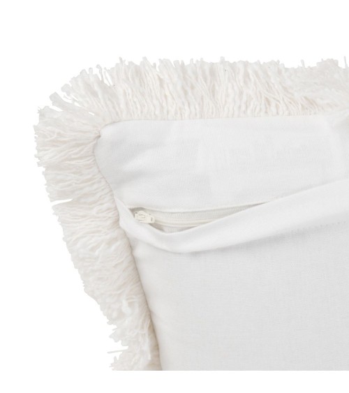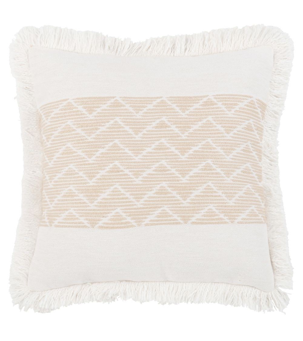 Housse de coussin en coton motifs graphiques et franges écrus et beiges 40x40