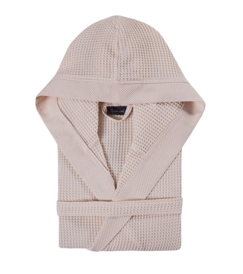 Peignoir mi-long nid d'abeille à capuche Pétale L