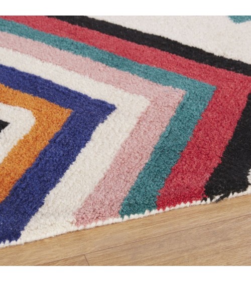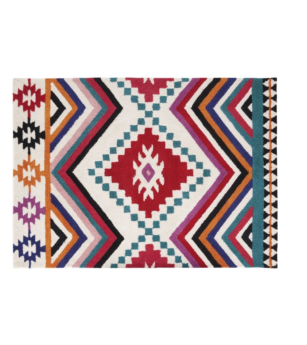 Tapis tufté en laine imprimé rose, bleu, écru et orange 160x230