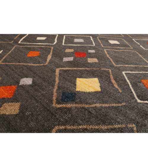 Tapis tissé ethnique chic à franges multicolore fond gris 160x225