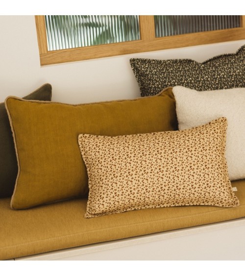 Le coussin idéal qui apporte une légère touche de couleur de chaleur dans votre intérieur : craquez pour le coussin Taormina Léopard Sable. Composition :Vendu sans garnissage, uniquement la housse. 100% en lin lavé imprimé Léopard. Finitions :Fermeture éclair invisible, finition volant. Entretien :Lavage délicat à 30°C, pas de sèche-linge.Nous vous conseillons de le repasser très légèrement afin de conserver l'effet légèrement froissé du lin lavé. Dimensions :30 x 50 cm. En savoir plus :Pour le lin lavé, les fibres utilisées sont uniquement des fibres longues. Ces fibres sont ensuite converties en fils avec une technique particulière : le filage au mouillé. Ainsi, les fils sont fins, lisses, lustrés, solides et réguliers ; ils sont destinés à la fabrication de tissus de grande qualité. Cest pourquoi ce linge en lin ne peluche pas, ne se déforme pas et sentretient facilement.La teinture et le lavage sont deux étapes capitales de notre processus de fabrication. Ces produits en lin sont, dans un premier temps, teints ; avant dêtre lavés et adoucis de manière naturelle. Les fibres sont teintes de manière pigmentaire. Nos couleurs résistent au lavage & à la lumière. Chaque production est unique avec des variations de couleurs.Les tissus de lin, leur tissage, leur poids (170 gr /m2), combinés à ce processus de finition particulier rendent nos produits uniques. La sensation est douce et légère, laspect, légèrement « froissé », est authentique et élégant.
