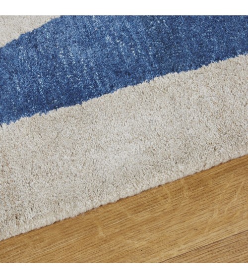 Tapis en laine, lin et viscose tuftés à la main écrus et bleus 160x230