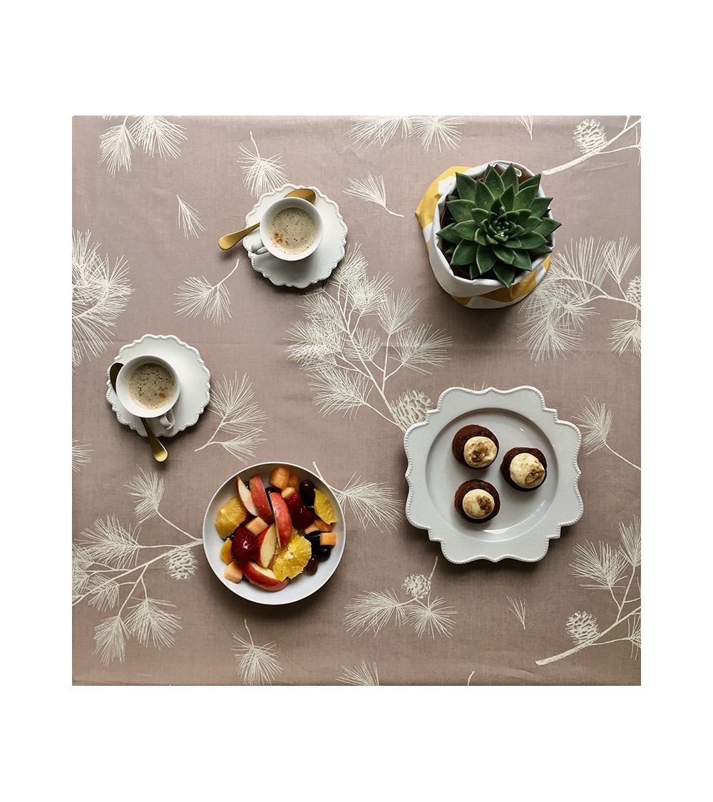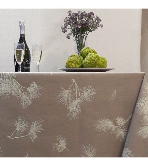 Matière : Coton enduit - Finition : Ourlée - La collection Pin a été dessinée au trait de crayon en s'inspirant d'une branche de pin dans la nature. Ici en beige, on plonge directement dans la forêt ou dans les massifs alpins. Le motif est décliné en 2 coloris. Nappe de table imperméable et anti-tache : La Nappe enduite ronde ou ovale Pin Beige Fleur de Soleil est réalisée en coton enduit de haute qualité et résiste aux taches de toute la famille (vin, café, chocolat, sauce tomate, huile...) Fabrication 100% française : Le tissu Fleur de Soleil est tissé, blanchi, imprimé et enduit dans les Vosges, à Gérardmer. Tissu écologique : Impression du tissu certifiée Oeko-Tex classe I (les bébés peuvent le mettre à la bouche), enduction sans produits toxiques, sans PVC, sans phtalates Entreprise socialement responsable : les commandes sont réalisées et expédiées par un ESAT (Etablissement Spécialisé d'Aide par le travail) permettant à des handicapés de travailler en milieu ''protégé''. Nappe facile d'entretien : La Nappe enduite ronde ou ovale Pin Beige s'entretient d'un coup d'éponge humide après chaque repas. Vinaigre d'alcool ou eau de Javel pour bien nettoyer. Lavage en machine possible occasionnellement à 30 C sans produit adoucissant ni essorage. Repassage obligatoire sur l'envers en position coton ou sur l'endroit avec une patte-mouille.