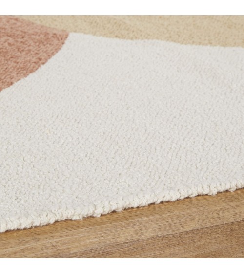 Tapis en coton recyclé noué motifs graphiques écrus, vieux rose et marron 140x200
