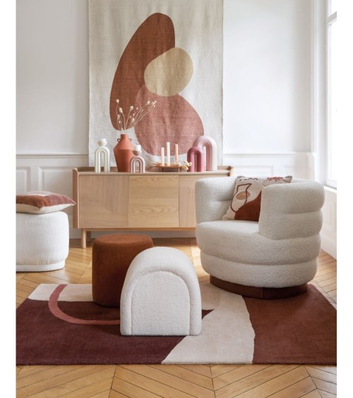 On aime les formes douces et graphiques du tapis CARRAMAR ! Imaginé par nos stylistes, ce tapis noué est en coton recyclé, plus respectueux de l'environnement. Il vous plaît ? Son motif est également décliné sur un coussin, à adopter pour un audacieux clin dil !