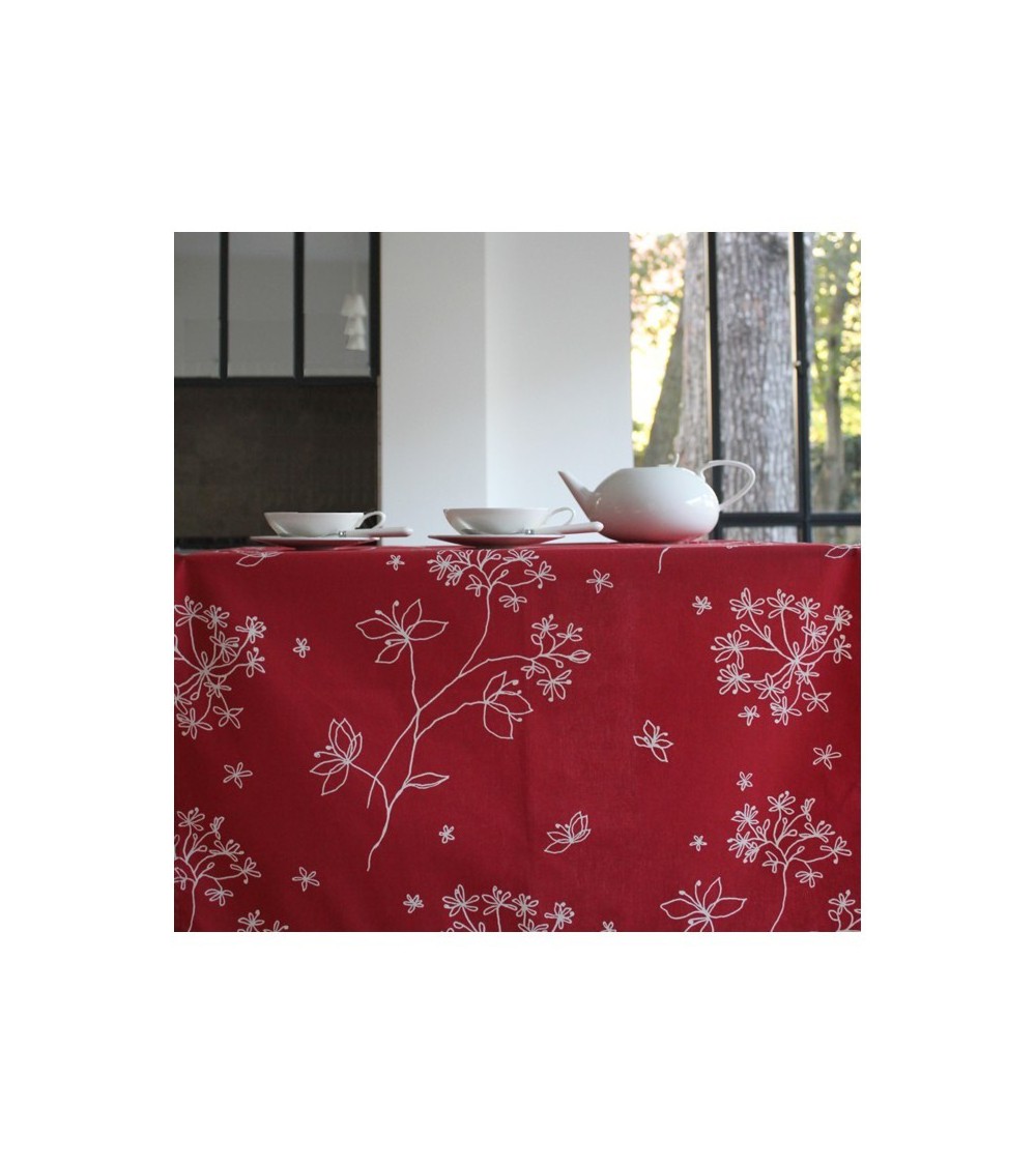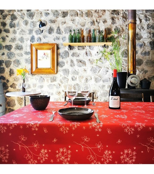 Matière : Coton enduit - Finition : Non ourlée (coupe franche) - La collection Astrance reprend un classique de la végétation de montagne: l'astrance. Les fleurs stylisées donnent un sérieux coup de jeune au thème montagne et lui donnerait presque un petit air scandinave. Ici en rouge, le motif Astrance est également décliné en 4 autres coloris. Nappe de table imperméable et anti-tache : La Nappe enduite Astrance rouge Fleur de Soleil est réalisée en coton enduit de haute qualité et résiste aux taches de toute la famille (vin, café, chocolat, sauce tomate, huile...) Fabrication 100% française : Le tissu Fleur de Soleil est tissé, blanchi, imprimé et enduit dans les Vosges, à Gérardmer. Tissu écologique : Impression du tissu certifiée Oeko-Tex classe I (les bébés peuvent le mettre à la bouche), enduction sans produits toxiques, sans PVC, sans phtalates Entreprise socialement responsable : les commandes sont réalisées et expédiées par un ESAT (Etablissement Spécialisé d'Aide par le travail) permettant à des handicapés de travailler en milieu ''protégé''. Nappe facile d'entretien : La Nappe enduite Astrance rouge s'entretient d'un coup d'éponge humide après chaque repas. Vinaigre d'alcool ou eau de Javel pour bien nettoyer. Lavage en machine possible occasionnellement à 30 C sans produit adoucissant ni essorage. Repassage obligatoire sur l'envers en position coton ou sur l'endroit avec une patte-mouille.