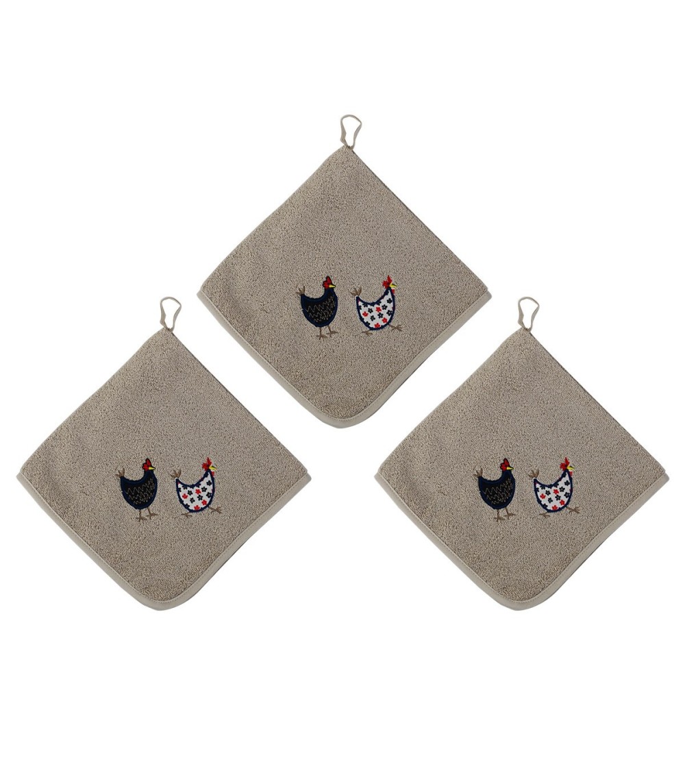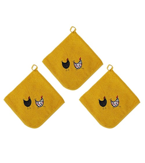 Ce lot de 3 torchons carrés et ses 2 petites poules brodées vous tiendront compagnies dès votre entrée dans la cuisine ! L'éponge qui les compose vous assure une absorption irréprochable, de quoi limiter les catastrophes ! Qu'ils soient de couleur Safran, Ficelle ou Gris Perle, ils amèneront de la vie à votre cuisine. Ce lot de 3 torchons éponge carré vous est proposé en 50x50cm et sont accompagnés d'une accroche, afin de ne pas prendre trop de place, sans être oubliés !Caractéristiques du torchon carré Sensei Maison :? Torchon de cuisine composé de 100% coton? Pouvoir d'absorption : élevé Densité : 420gr/m²? Fabrication et choix du tissus de haute qualité? Taille : Standard 50x50 cm? Couleur : uni Vaste choix de couleurs mis à disposition? Facile d'entretien Lavable en machine 60° Séchage modéréDepuis des décennies, Sensei Maison vise à rendre vos intérieurs cocooning. Au travers de nos collections tendances, uniques et design notre ambition a toujours été de privilégier un rapport qualité/prix le plus juste. En savoir plus :Ce produit est certifié de la norme OEKO-TEX® Standard 100 Cette certification vise à garantir la non-toxicité des textiles et des colorants.