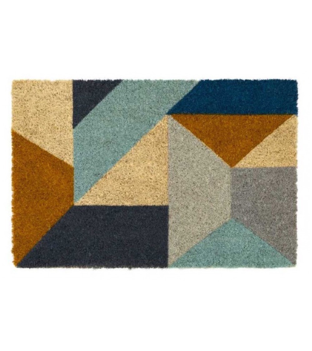Paillasson en coco avec formes géométriques multicolores. Dimensions:60x40x1.5cm - Matière: Coco - Couleur: Multicolore